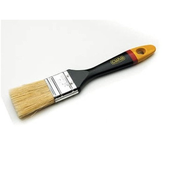 Пензель має плоску флейцеву форму з комбінованою щетиною довжиною 44 мм та товщиною 12 мм. Мікс натурального та штучного ворсу забезпечує оптимальний баланс між утриманням фарби, рівномірністю нанесення та стійкістю до хімічного впливу розчинників. Металева обойма надійно фіксує щетину та запобігає її випаданню. Рукоятка виготовлена з дерева для зручного хвату та природного відчуття в руці.