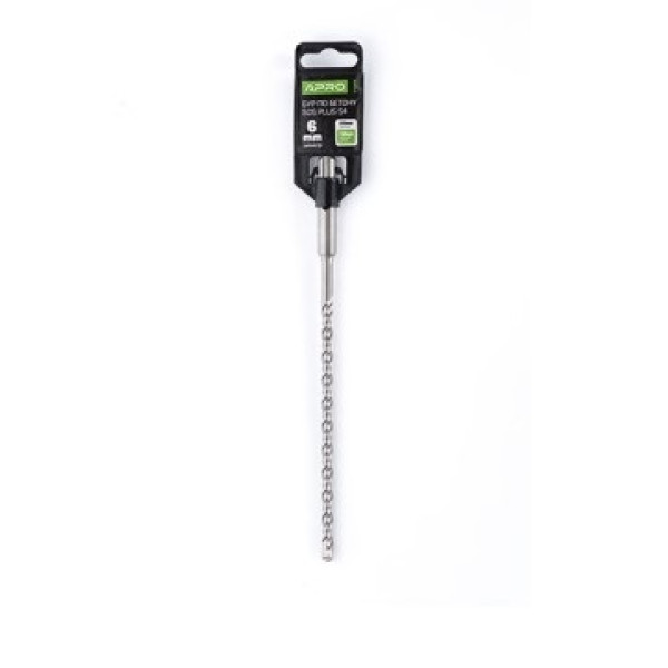 Бур APRO з хвостовиком SDS+ діаметром 10 мм та загальною довжиною 600 мм призначений для ударного свердління бетону. Це подовжена версія бура Ø10 мм для задач, де стандартної довжини недостатньо — наскрізне проходження стін, свердління масивних конструкцій. Діаметр 10 мм — один із найпоширеніших розмірів для встановлення дюбелів та анкерних кріплень. Конструкція S4 із чотирма різальними кромками забезпечує симетричне навантаження, що підвищує точність свердління та зменшує вібрацію навіть при значній глибині отвору.