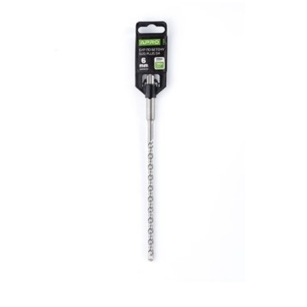 Бур по бетону SDS+ S4 Ø6x210 мм (APRO) — компактний бур із чотирирізцевою робочою частиною типу S4 та хвостовиком SDS+ для свердління отворів у бетоні перфоратором. Діаметр 6 мм та загальна довжина 210 мм роблять його зручним інструментом для повсякденних монтажних та кріпильних робіт.