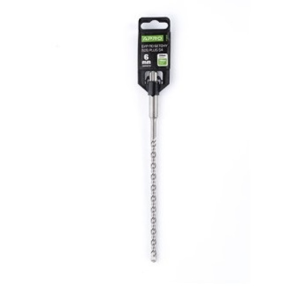 Бур APRO з хвостовиком SDS+ діаметром 6 мм та загальною довжиною 260 мм призначений для ударного свердління бетону. Чотиригранна (квадро) форма твердосплавної напайки типу S4 забезпечує симетричне навантаження на бур, що підвищує точність свердління та зменшує вібрацію. Діаметр 6 мм — один із базових розмірів для встановлення стандартних дюбелів та легких кріплень. Хвостовик SDS+ сумісний із більшістю перфораторів відповідного класу.
