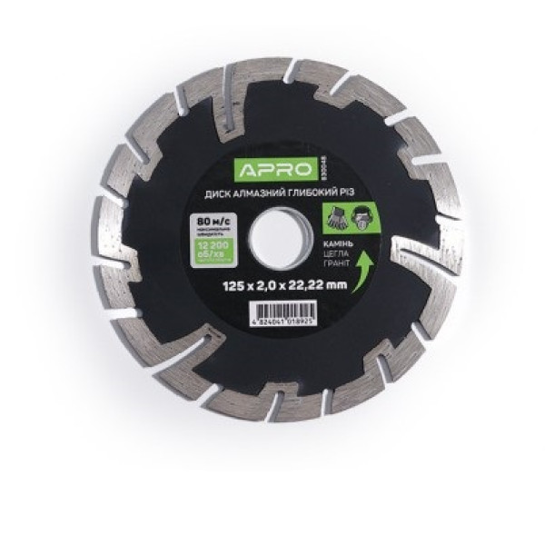 Алмазний диск APRO серії "Глибокий Різ" — це поєднання продуктивності та довговічності. Збільшена висота сегментів та концентрація алмазів 22-24% забезпечують тривалий термін роботи навіть при інтенсивному різанні бетону. Товщина пропилу 2,4 мм дозволяє різати точно та з мінімальним навантаженням на інструмент.