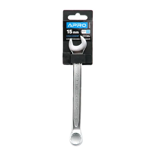 - Ключ ріжково-накидний CrV 15мм (холодний штамп DIN3113) APRO — 1 шт.