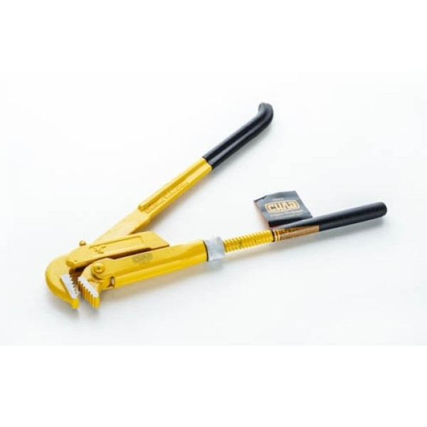 Корпус ключа виготовлений методом кування з хром-ванадієвої сталі — це забезпечує більш однорідну кристалічну структуру металу і підвищену ударостійкість порівняно з литими аналогами. Розширені губки під кутом 90° розраховані на розмір 1,5" і надійно охоплюють трубу або фітинг без люфту. Насічка на губках утримує деталь при прикладанні значного крутного моменту, необхідного для роботи з трубами великого діаметру. Рукоятка з термопластичної гуми ергономічно спрофільована і не дає інструменту вислизати з руки навіть при максимальних зусиллях.