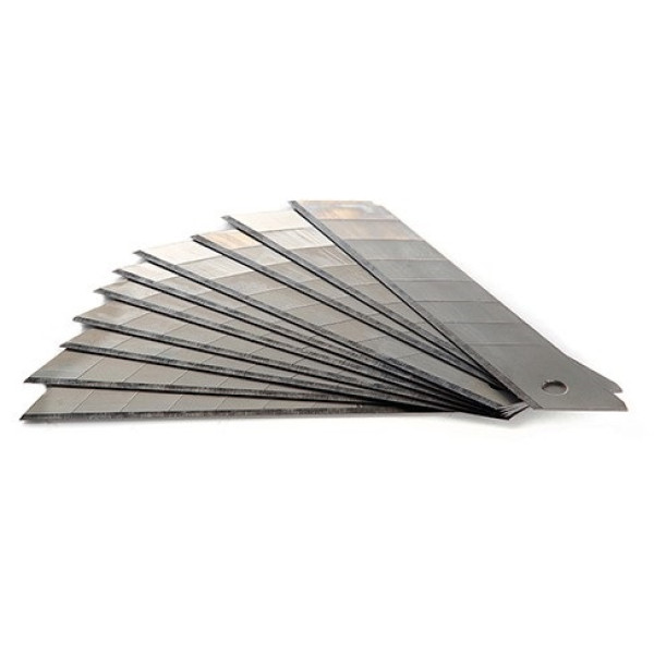 Лезо виготовлене зі сталі SK2, що відзначається підвищеною твердістю та довговічністю. Сегментований дизайн дозволяє при необхідності відламувати затуплені ділянки для продовження терміну експлуатації. Застосовується у різних ножах для точного різання паперу, картону, плівок, термоізоляції та інших матеріалів. Компактні розміри та зручність використання роблять його зручним як для майстрів, так і для домашніх користувачів.