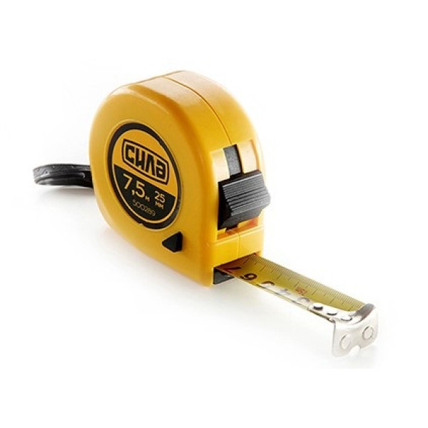 Рулетка Стандарт з магнітом 7,5м х 25мм СИЛА — надійний вимірювальний інструмент із стрічкою 7.5 м і шириною 25 мм для точних вимірювань на будівельному майданчику і при ремонті. Широка стрічка 25 мм не провисає при висуванні на значну відстань, а магнітний наконечник фіксує початок вимірювання на металевих поверхнях без сторонньої допомоги.