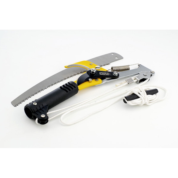 Для зрізання тонких пагонів (до 32 мм) розмістіть лезо сучкоріза навколо гілки та потягніть шнур — штанговий механізм зімкне леза. Для спилювання товстих гілок використовуйте знімну ножівку. За потреби під'єднайте телескопічну ручку-подовжувач (продається окремо) для роботи на висоті. Після роботи очистіть леза та ножівкове полотно від рослинних залишків та соку, при необхідності змастіть для захисту від корозії.