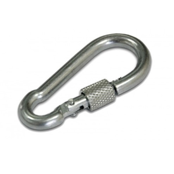 Карабін виготовлений із низьковуглецевої сталі — матеріалу, який поєднує міцність із пластичністю. Діаметр прутка 10 мм забезпечує високу стійкість до розриву та деформації. Біле цинкове покриття захищає від корозії та подовжує термін служби при роботі на відкритому повітрі. Замковий механізм фіксує карабін у закритому положенні, не дозволяючи йому розкритися під дією навантаження чи вібрації.