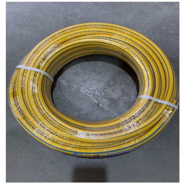Цей полімерний шланг у вигляді бухти має армовану структуру, що забезпечує підвищену міцність і стійкість до розтягування та механічних пошкоджень. Його використовують для підключення до водопровідних систем та поливу рослин на дачних ділянках, городах чи садах. Продукт підходить для забезпечення довготривалої роботи в умовах середніх навантажень і змін температур.