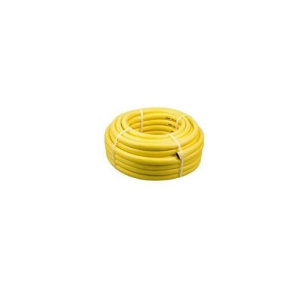 Цей армований шланг виготовляється у вигляді бухти довжиною 50 метрів із жовтого матеріалу, що забезпечує видимість та зручність використання. Він ідеально підходить для садівників і дачників, які потребують надійного та довговічного рішення для поливу на відкритих ділянках. Конструкція шланга призначена для стійкості до впливу ультрафіолету та різких перепадів температур.
