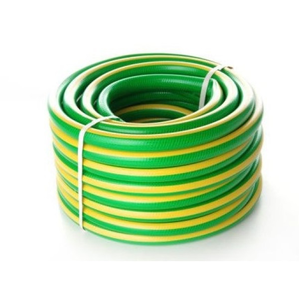 Шланг виготовлений з ПВХ з чотиришаровою конструкцією. Додатковий четвертий шар порівняно з тришаровими моделями забезпечує підвищену міцність, стійкість до тиску та механічних пошкоджень. Багатошарова будова підвищує стійкість до перегинів та заломів, подовжуючи термін служби шланга.