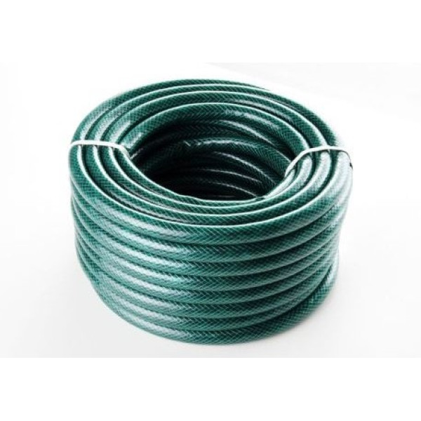 Шланг виготовлений з ПВХ з тришаровою конструкцією. Внутрішній шар забезпечує гладку поверхню для безперешкодного проходження великого об'єму води, середній армований шар надає міцність та стійкість до тиску, а зовнішній шар захищає від впливу ультрафіолету та механічних пошкоджень.