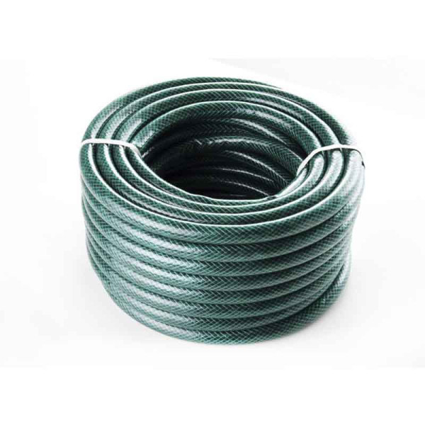 Шланг виготовлений з ПВХ з двошаровою армованою конструкцією. Два шари забезпечують оптимальний баланс між міцністю та гнучкістю — шланг легший та еластичніший за тришарові моделі, при цьому армування надає стійкість до тиску та механічних пошкоджень.
