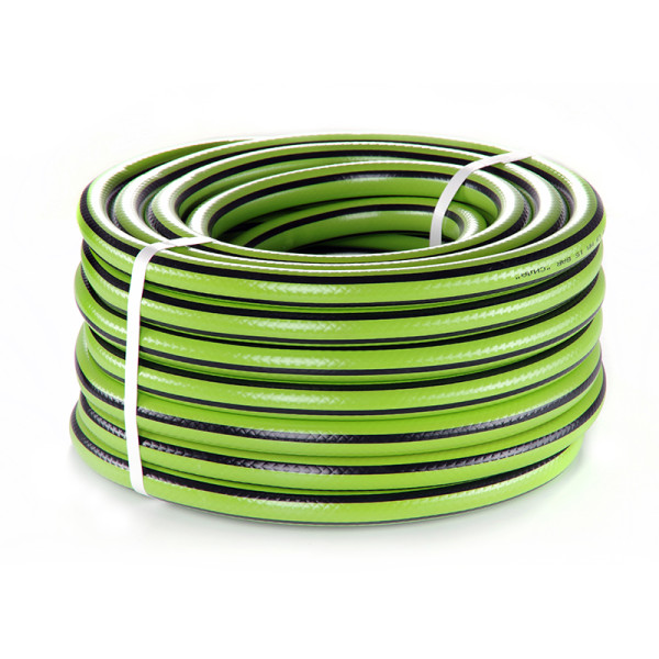 Шланг М'ЯТА виготовлений із ПВХ за чотиришаровою технологією. Кожен шар виконує свою функцію — від внутрішнього гладкого покриття для безперешкодного проходження води до зовнішнього захисного шару, стійкого до зношування та зовнішніх впливів. Ключова особливість серії М'ЯТА — підвищена гнучкість, яка забезпечує комфортну роботу без зайвих зусиль при розгортанні та переміщенні шланга по ділянці.