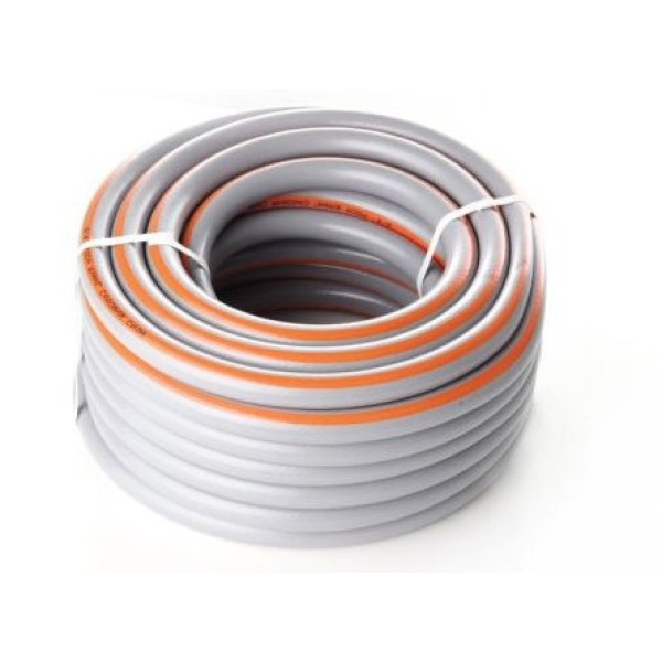 Шланг має тришарову конструкцію з ПВХ та додаткове текстильне армування з перехресним переплетенням. Армування забезпечує стійкість до високого тиску (до 10 бар) та запобігає деформації шланга під навантаженням. Шланг не містить токсичних речовин — кадмію, барію та свинцю, що підтверджено відповідністю стандартам якості. Матеріал атмосферостійкий — витримує вплив ультрафіолету та перепади температур. Гнучка конструкція полегшує роботу та зберігання.