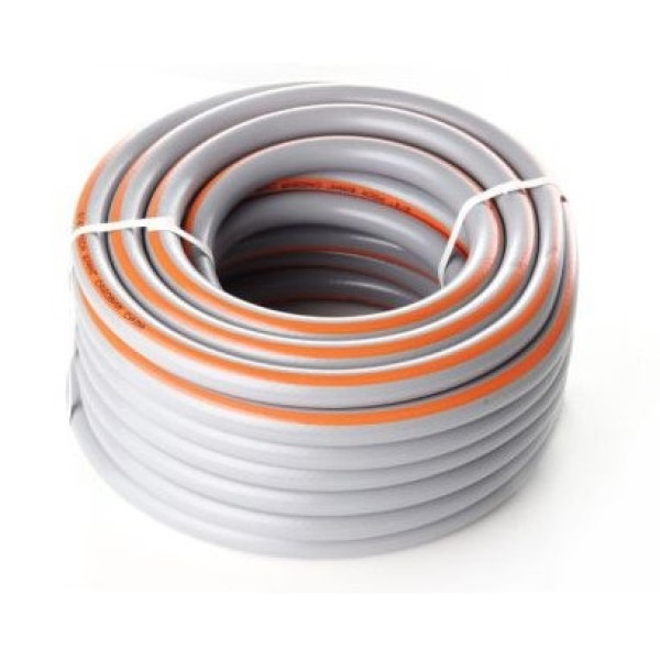 Садовий шланг РОСА від бренду СИЛА належить до преміальної лінійки та відзначається підвищеним робочим тиском — 10 бар. Тришарова конструкція зі звичайним перехресним переплетенням армування забезпечує тривалий термін служби та стійкість до механічних впливів. Діаметр 3/4'' дає достатній потік води для ефективного поливу навіть на великих відстанях. Сірий колір із помаранчевою смугою робить шланг помітним серед рослин. Усі шланги серії СИЛА стійкі до погодних умов — їх можна залишати під відкритим сонцем без наслідків для матеріалу.