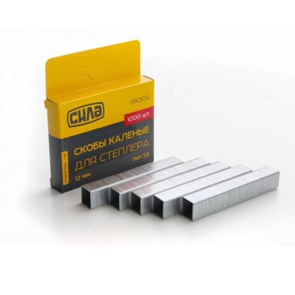 Скоби СИЛА 10×11,3×0,7 мм тип 53 — загартовані U-подібні скоби для ручних степлерів. Висота ніжки 10 мм забезпечує надійне утримання матеріалів середньої товщини. Стандарт тип 53 (А) гарантує сумісність із більшістю будівельних та меблевих ручних степлерів. Застосовуються для з'єднання деревини, фанери, картону, ДСП, оргаліту та обшивки меблів тканинами.