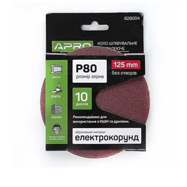 - Коло шліфувальне APRO 125 мм P80 на липучці — 1 шт.