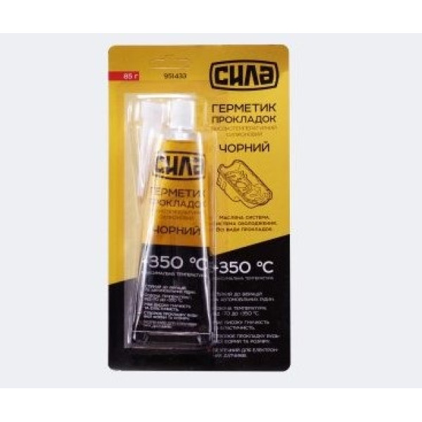 Герметик прокладок високотемпературний +350 °С, 100% силіконовий, чорний 85г СИЛА — високотемпературний герметик на каучуковій основі для ремонту та заміни прокладок, що працюють при температурах від -70 до +350 °С. 100% натуральний силікон, стійкий до автомобільних рідин, безпечний для електронних датчиків.