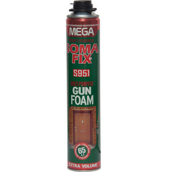 Піна монтажна професійна Soma Fix MEGA всесезонна 850 мл — високоякісна професійна монтажна піна на поліуретановій основі збільшеного об'єму. Завдяки спеціальній формулі виступає як об'ємний монтажний матеріал та наповнювач. Твердне під впливом вологості повітря, утворюючи міцну багатофункціональну структуру.