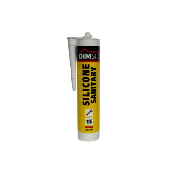 Герметик DIMSIDE санітарний білий 280мл — силіконовий герметик для герметизації швів і щілин у приміщеннях з постійною вологістю. Призначений для кухонь, ванних кімнат та санвузлів, а також для ущільнення і склеювання склоподібних непористих поверхонь.