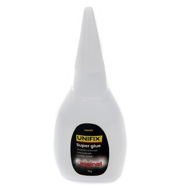 Супер клей 15 г UNIFIX — універсальний секундний клей-гель для швидкого склеювання пластмас, гуми, металів, дерева, порцеляни, кераміки, шкіри, тканин, картону та паперу. Формат 15 г — золота середина між компактністю та запасом клею, який зручно тримати вдома або в майстерні для регулярного використання.