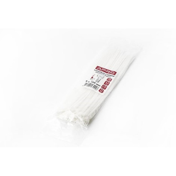 - Стяжка кабельна багаторазова 5х400 мм біла APRO — 100 шт.