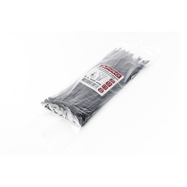 - Стяжка кабельна багаторазова 5х400 мм чорна APRO — 100 шт.