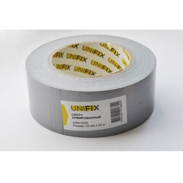 Армована стрічка UNIFIX виготовлена з поліпропіленової основи, підсиленої тканинною ниткою, що робить її значно міцнішою за звичайну пакувальну або малярну стрічку. Ширина 50 мм — стандартний розмір для більшості задач, а довжина 50 м забезпечує достатній запас для серйозних об'єктів: герметизації повітроводів, ізоляції стиків, захисту поверхонь та фіксації матеріалів. Клей на основі синтетичного каучуку добре тримається і на гладких, і на шорстких поверхнях. Товщина 150 мкм дає стрічці достатню щільність для виконання захисних та герметизуючих функцій.