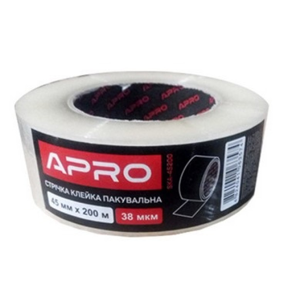 - Стрічка клейка пакувальна (скотч) 38 мкм 45 мм 200 м APRO — 1 рулон.
