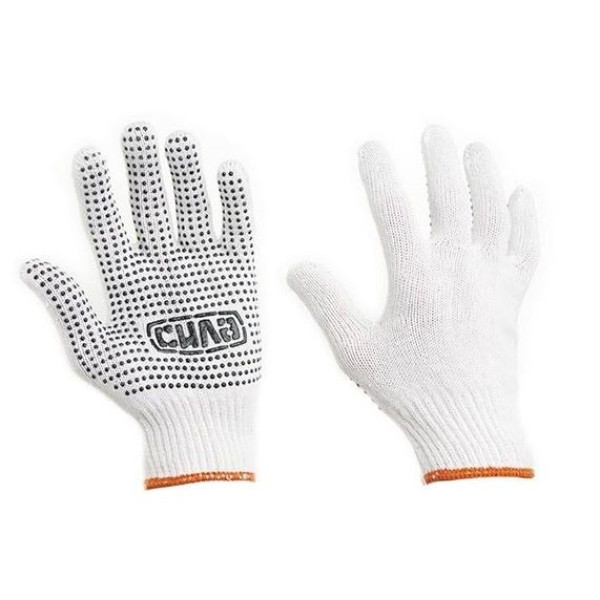 Рукавички Х/Б з ПВХ точкою р10 (білий + чорний ПВХ економ) СИЛА