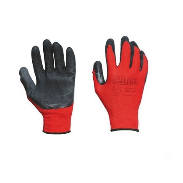 Рукавички з спіненим латексним покриттям р10 (червоний + чорний) (СИЛА) — надійний і доступний захист рук для щоденних робіт. Поєднання поліестерової основи та спіненого латексу дає оптимальний баланс між гнучкістю, зчепленням і захистом. Яскраве забарвлення та зручна посадка роблять їх практичним вибором як для щоденної роботи на будівництві, так і для домашніх завдань.