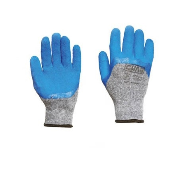 Основа рукавички виготовлена з поліестерового трикотажу, який добре тягнеться та повторює форму руки. Спінене латексне покриття нанесене на долонну частину та пальці — там, де зчеплення та захист потрібні найбільше. Манжета на резинці утримує рукавичку на місці навіть при інтенсивній роботі. Двоколірне оформлення — сіра основа з синіми акцентами.