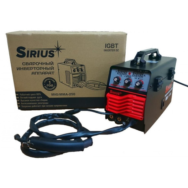 Зварювальний апарат SIRIUS MIG/MMA 260 є універсальним інверторним пристроєм, який об'єднує функції напівавтомата (MIG/MAG) та ручного дугового зварювання (MMA). Цей інверторний зварювальний апарат призначений для професійного та напівпрофесійного використання, забезпечуючи високу якість зварних швів при зручному керуванні й надійній роботі.