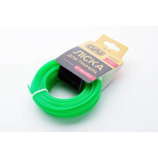 Ліска СИЛА діаметром 2,4 мм із гептагональним (семигранним) перерізом — це витратний матеріал із покращеною геометрією для тримерів. Гептагон має сім ріжучих граней, рівномірно розташованих по колу — це більше, ніж у квадратного чи зіркоподібного профілю. Кожна грань контактує з рослинністю окремо, забезпечуючи акуратний зріз без розривів стебел. Діаметр 2,4 мм — збалансований варіант між легким та важким класом: справляється і з молодою травою, і з бур'янами середньої жорсткості.