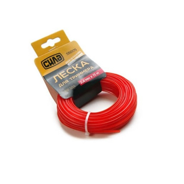 Нейлонова ліска СИЛА діаметром 2,4 мм із профілем "зірка" призначена для заправки в котушку тримера. Зіркоподібний переріз — один із найефективніших серед усіх типів профілів: кожен промінь зірки формує окрему ріжучу грань, яка врізається в стебла рослин. Завдяки цьому зріз виходить чистим і акуратним, а трава після покосу виглядає доглянутою. Діаметр 2,4 мм — збалансований варіант між легким та важким класом: справляється і з молодою травою, і з бур'янами підвищеної жорсткості, при цьому сумісний із більшістю побутових тримерів.