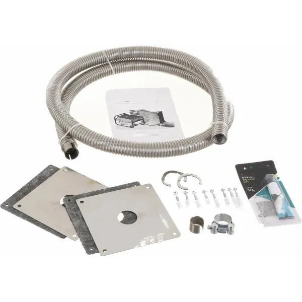 ECF ED025201 — комплект із вузлом проходу через стіни, що робить його оптимальним вибором для стаціонарного встановлення генератора в приміщенні. Нержавіючий рукав, готовий прохід і кріплення в одній упаковці від українського виробника — все необхідне для швидкого та надійного монтажу системи відведення вихлопу.