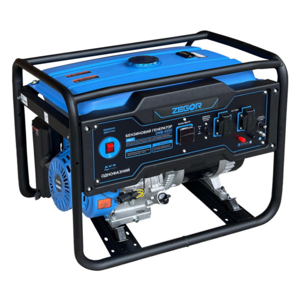 Бензиновий генератор ZEGOR DNB-5555 PRO — потужне портативне джерело автономного електроживлення з номінальною потужністю 5,5 кВт і максимальною 6 кВт. Система AVR, захист від низького рівня масла та перевантаження, вольтметр і вихід 12V на борту — надійне рішення для дому, дачі та будівельного об'єкту.
