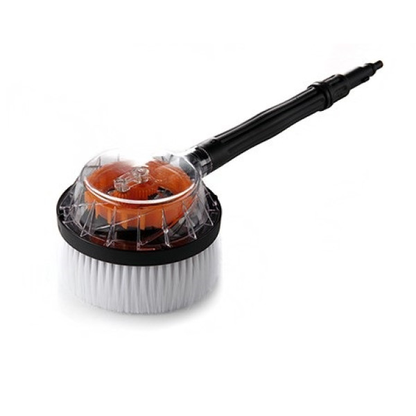 Роторна щітка підключається до мийки високого тиску APRO і обертається за рахунок тиску води, що проходить через неї. Завдяки цьому поверхня одночасно промивається водою та очищується щетиною, що значно підвищує ефективність миття. Щітка особливо корисна при очищенні великих площ — автомобілів, фасадів, терас та садової техніки.