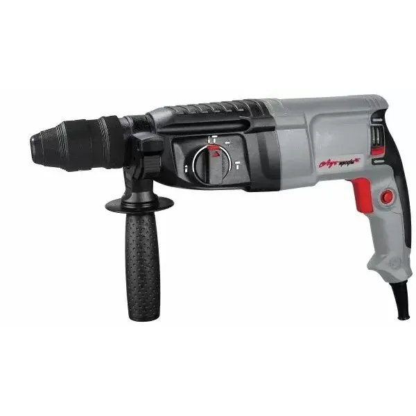 Пряма компоновка корпусу забезпечує зручну роботу як у горизонтальному, так і у вертикальному положенні. Патрон SDS+ дозволяє міняти бури, долота і піки без ключа — швидко і без зусиль. Додаткова рукоятка кріпиться на шийку перфоратора і забезпечує впевнене дворучне керування. Антивібраційна система вбудована в конструкцію і реально відчувається при тривалому свердлінні твердих матеріалів. Електронний блок керування швидкістю розміщений безпосередньо в кнопці пуску — регулювання інтуїтивне і зручне.