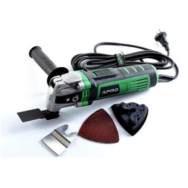 Мережевий реноватор APRO MT550 — багатофункціональний інструмент із максимальною потужністю до 550 Вт та регулюванням обертів від 14 000 до 23 000 об/хв. Безінструментальне кріплення насадок, кут коливань 4,5°, кабель 4 м та вага 2,2 кг забезпечують точну, зручну та продуктивну роботу з різними матеріалами.