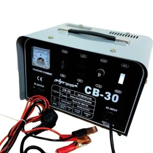 Промінь-Профі СВ-30 — зарядний пристрій із вбудованим стабілізатором вхідної напруги, що забезпечує стабільний струм заряду незалежно від коливань у мережі. Підтримує два рівні вихідної напруги — 12 В і 24 В — для заряджання акумуляторів легкових автомобілів, мікроавтобусів і вантажної техніки. Вбудований запобіжник і індикатор роботи на передній панелі спрощують контроль процесу заряджання. Кабель довжиною 130 см забезпечує зручний радіус роботи навколо автомобіля. Клас захисту IP21 дозволяє використовувати пристрій у гаражних умовах із базовим захистом від вологи.