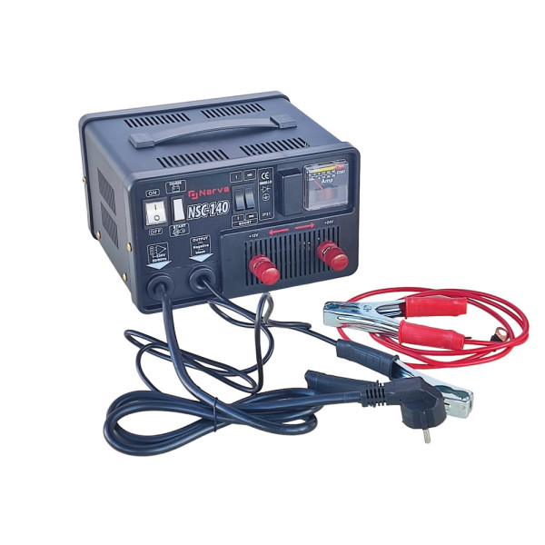 NARVA NSC-140 — пуско-зарядний пристрій із максимальною споживаною потужністю в режимі пуску 4800 Вт і пусковим струмом до 140 А. У режимі заряджання забезпечує номінальний струм 15 А та максимальний до 25 А при споживанні від мережі 1000 Вт. Підтримує акумулятори напругою 12 і 24 В із діапазоном ємностей від 20 до 400 А·год — охоплює весь спектр техніки від легкового автомобіля до вантажівки або автобуса. Вбудований захист від перевантаження та короткого замикання забезпечує безпеку в будь-якому режимі роботи.