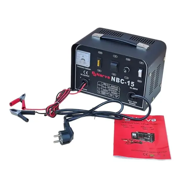 NARVA NBC-15 — зарядний пристрій із підтримкою двох напруг (12 і 24 В) і широким діапазоном сумісних акумуляторів від 20 до 200 А·год. Потужність 800 Вт забезпечує швидке та ефективне відновлення заряду, а номінальний струм 12 А гарантує щадний режим для повсякденного обслуговування АКБ. Максимальний струм до 20 А дозволяє прискорити заряджання при потребі. Компактний дизайн спрощує зберігання та транспортування — пристрій зручно тримати в багажнику для використання в дорозі.