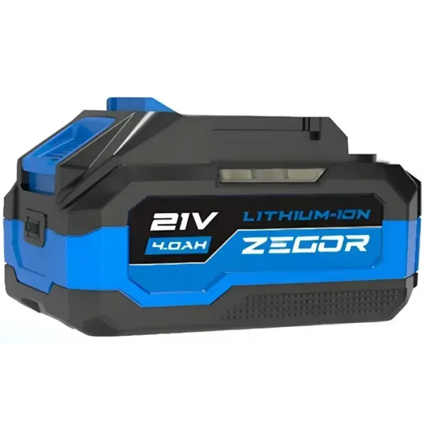 Батарея виконана у легкому пластиковому корпусі з надійним роз'ємом для підключення до інструментів Zegor 21 В. Компактні розміри та мала вага забезпечують зручне встановлення та комфортну роботу навіть при тривалому використанні. Вбудована система захисту контролює стан батареї в режимі реального часу та автоматично реагує на перегрів, коротке замикання та перерозряд, захищаючи як акумулятор, так і підключений інструмент.