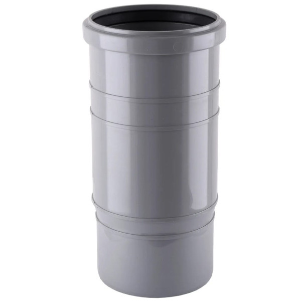 Компенсаційний патрубок VSplast 110 мм — це спеціальний каналізаційний фітинг з поліпропілену (ПП), призначений для компенсації температурних розширень та полегшення монтажу і демонтажу каналізаційних систем. Виріб сірого кольору має подовжений розтруб, який дозволяє компенсувати лінійні розширення труб при зміні температури та забезпечує можливість легкого від'єднання ділянок трубопроводу. Виробництво Україна.