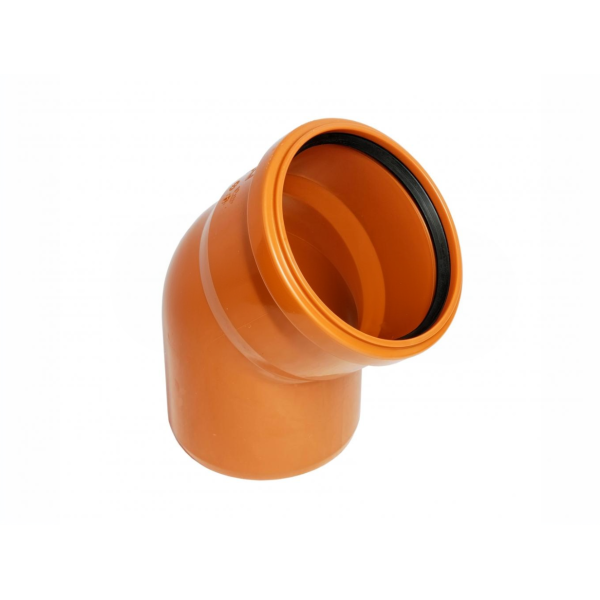 Каналізаційне коліно зовнішнє призначене для зміни напрямку трубопроводу під кутом 45 градусів. Використовується в системах зовнішньої каналізації для забезпечення надійного й герметичного переходу труб.