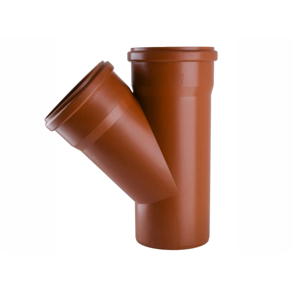 Трійник зовнішній — це елемент трубопровідної системи для підключення трьох труб діаметром 160 мм та відгалуження під кутом 45°. Використовується для організації відведення та підведення потоків у системах водовідведення або каналізації. Вигідно вирізняється надійністю матеріалу та точністю конструкції.