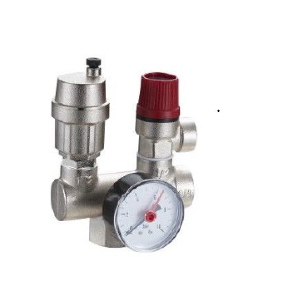 Група безпеки зазвичай складається з трьох ключових елементів, змонтованих на одній латунній основі: Манометр: Для візуального контролю тиску в системі. Автоматичний повітровідвідник: Видаляє повітря з контуру опалення, запобігаючи корозії та шуму. Запобіжний клапан: Скидає надлишок теплоносія, якщо тиск перевищує критичну позначку (зазвичай 3 бари).