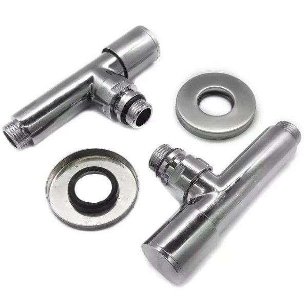 Радіаторні крани мають класичну конструкцію з різьбовими з'єднаннями діаметром 1/2 дюйма. Вони використовуються для встановлення на опалювальні радіатори, забезпечуючи можливість регулювання подачі тепла. Завдяки подовженому корпусу і хромованому покриттю комплект підходить для різних конфігурацій монтажу та додає дизайну сучасний вигляд. Крани надійні в експлуатації та стійкі до корозії.