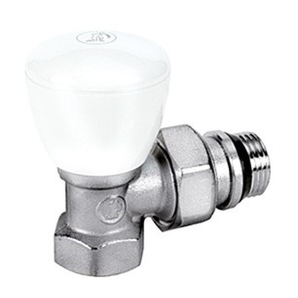 Кутовий корпус клапана виготовлений із латуні — стійкої до корозії та механічних навантажень. З'єднання з радіатором виконується через накидну гайку («американку») 1/2″ — розбірне з'єднання для зручного обслуговування. Регулювальний механізм забезпечує плавну зміну пропускного перерізу для точного дозування потоку теплоносія.